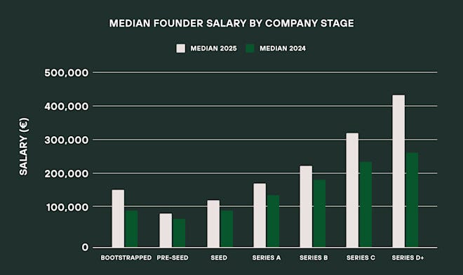 Founder salaries increase steadily with stage, but the biggest payoff still comes from ownership.