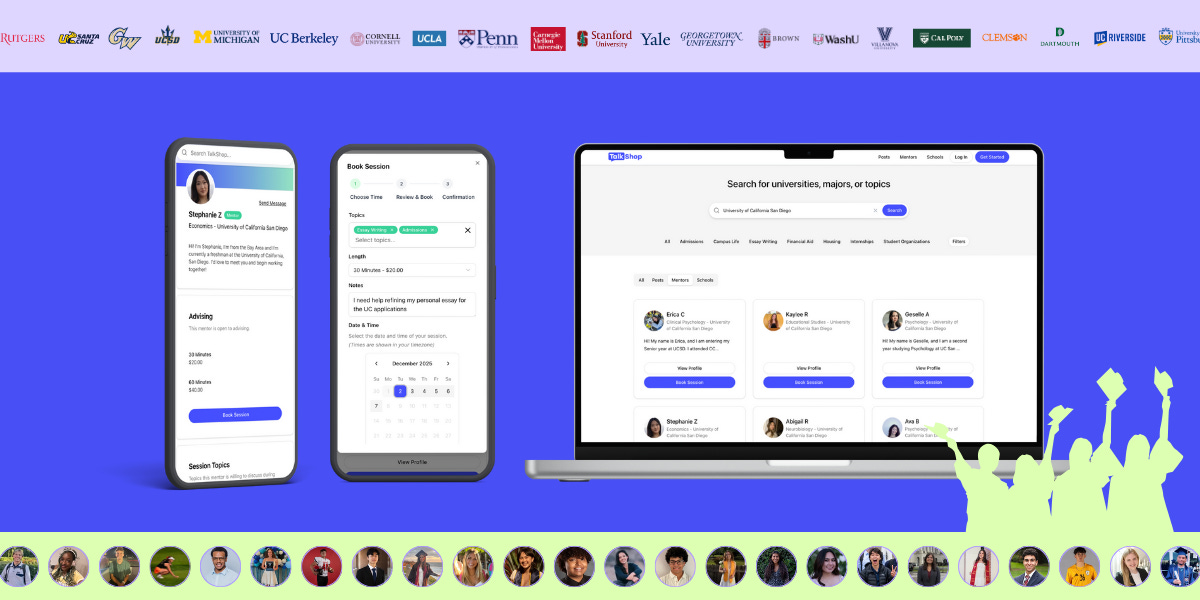 TalkShop connects students with vetted college students, recent grads, and young professionals who are living the majors, programs, and early career roles that high schoolers are trying to understand.