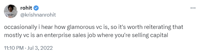 A good framework to understand venture, at least the upper tier of the venture world of repeat founders or experienced operators, or sell-side venture as I termed it above, is to see it as a market where the VC is a purveyor of their brand of capital.
