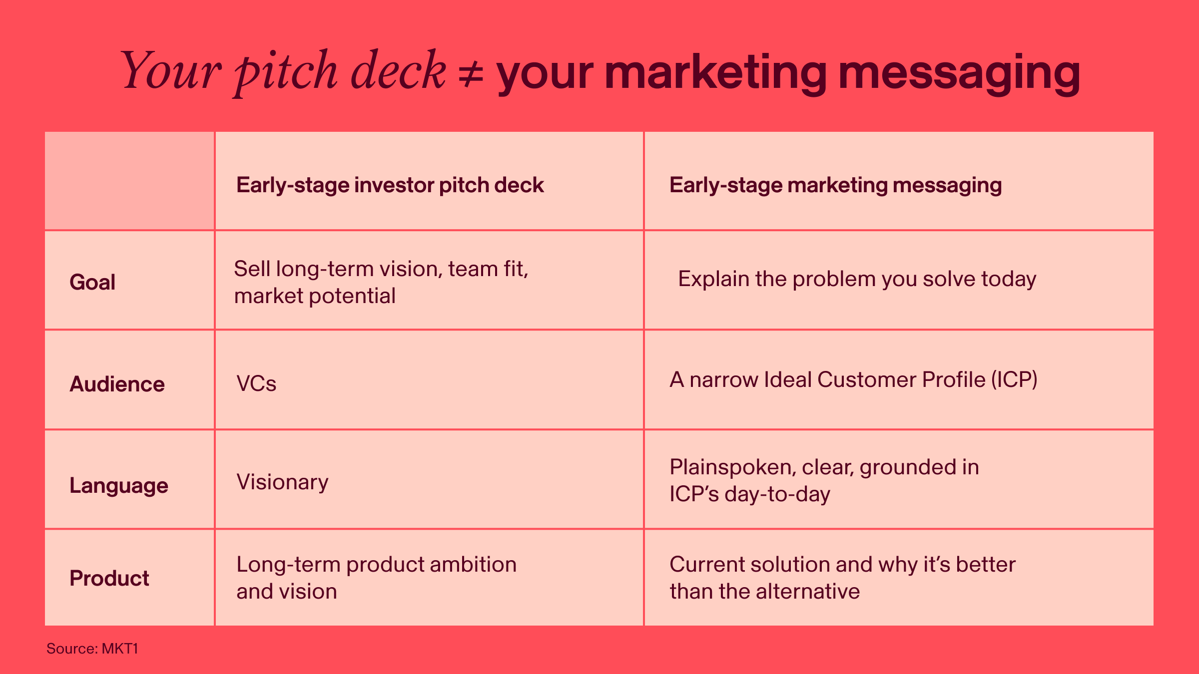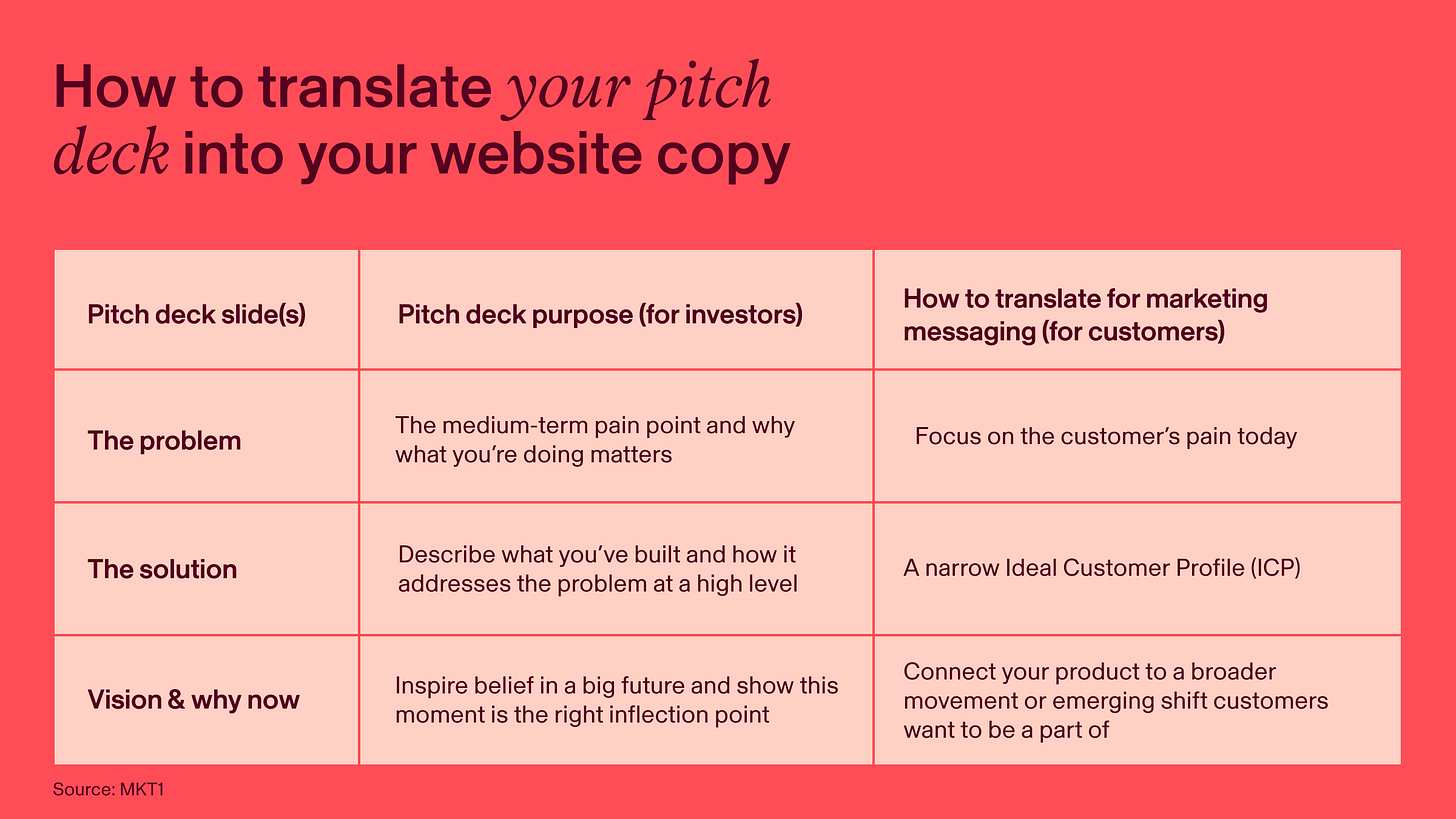 The quick win here? Audit your homepage. For every line of copy, ask: Is this written for a VC or a customer? If it’s VC-speak, rewrite it in your customer’s words.