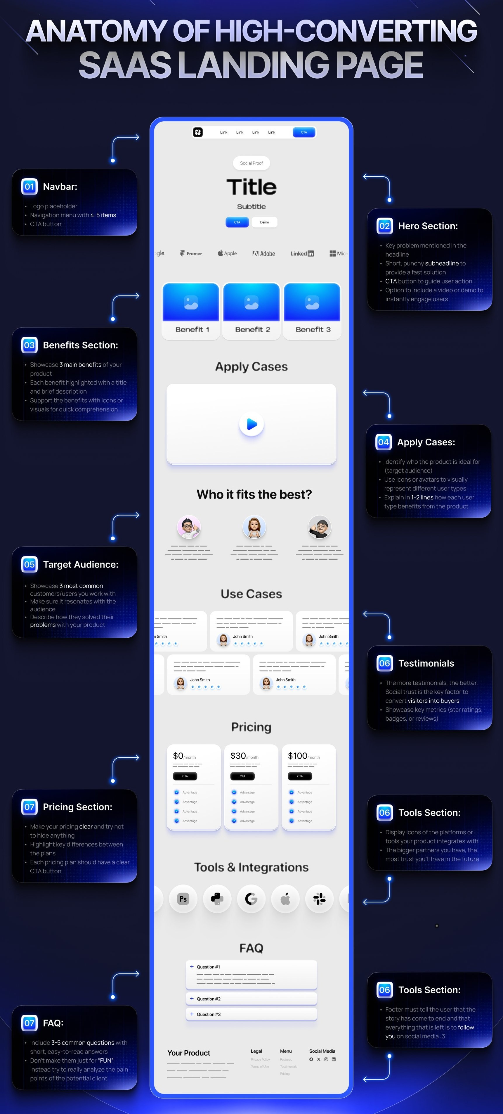 Tools & integrations → Display logos of platforms you work with (the bigger the partner, the stronger the trust).