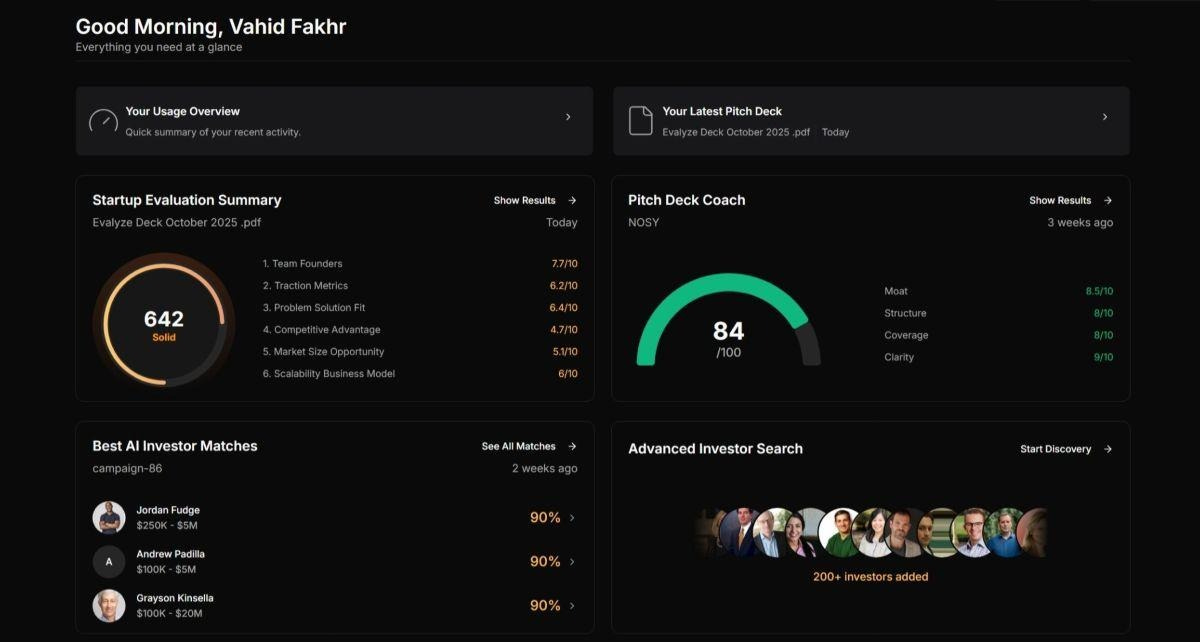 Evalyze helps fix that. It analyses your startup the way a VC would, then shows you investors who are actually likely to say yes - along with why they’re a match.