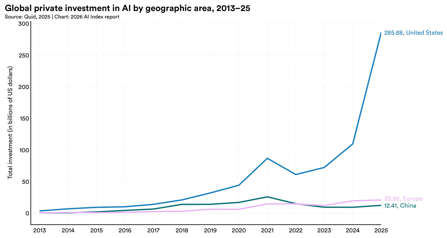 The U.S. still leads in top-tier models and private investment