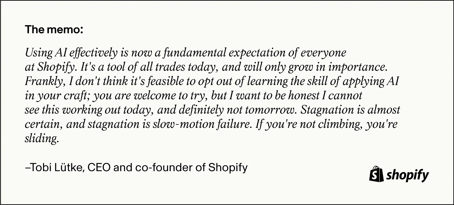 This one’s worth slowing down for. After Shopify CEO Tobi Lütke released an internal memo urging the company to treat AI as a baseline expectation, the world noticed.